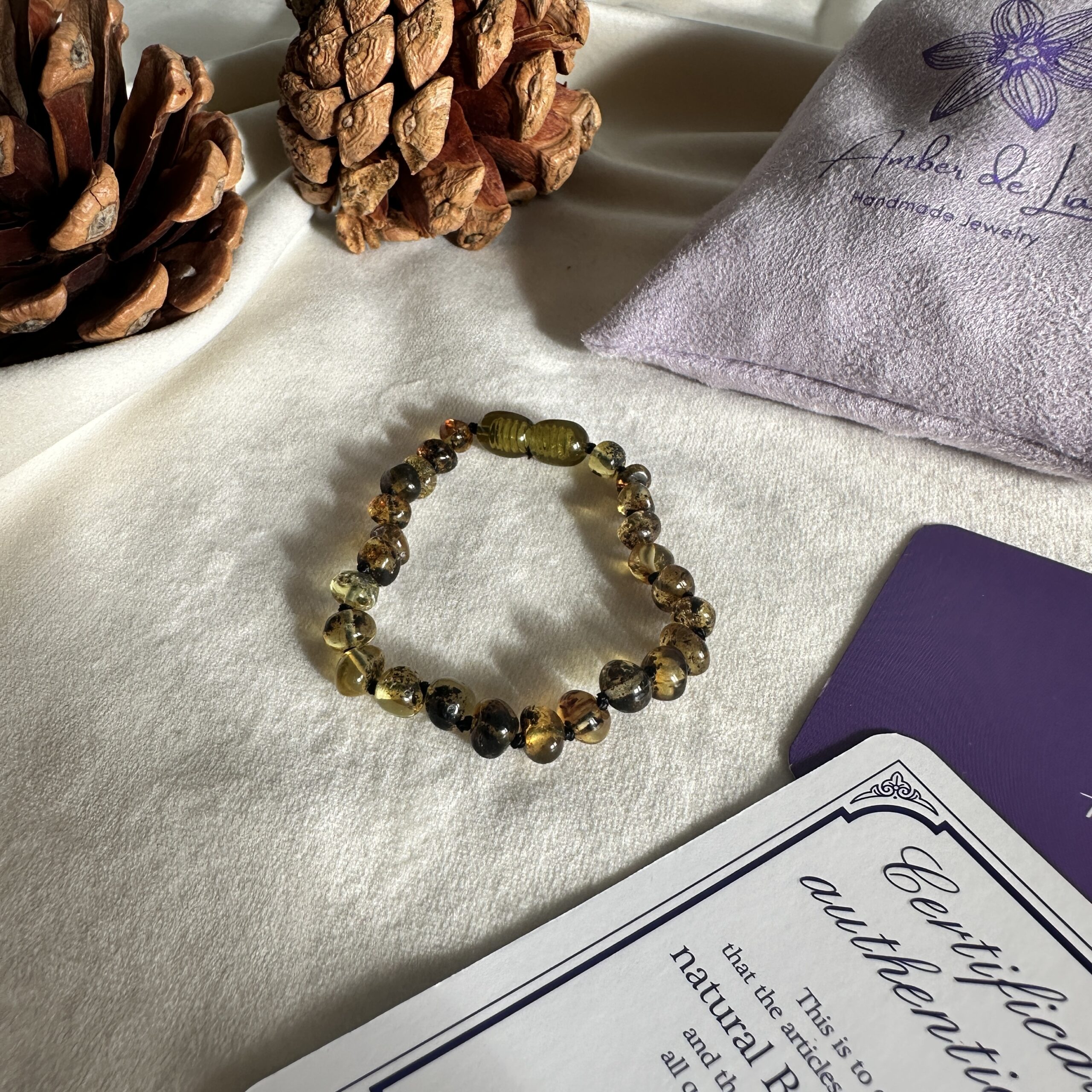 Brighten up your little one’s day with our Baby Bracelet with plant fossil! This delightful bracelet combines vibrant, natural amber beads in an array of colors, bringing a playful touch that’s both stylish and soothing. Designed with comfort in mind, each bead is polished for a smooth finish, gentle on delicate skin. Perfect for children, this multicolor amber bracelet adds a splash of color while providing natural, calming properties.